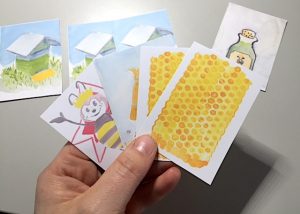 Depuis 10 ans, j’ai une douzaine de ruches dans le Sud Ouest. Je partage ma passion en allant dans les classes faire découvrir aux enfants l’apiculture. De cette expérience, j’ai créé un jeu de cartes. C’est un jeu de stratégie qui se joue dès 4 ans et qui permet de découvrir la vie des abeilles.