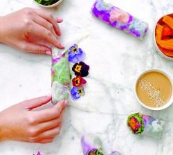 À la manière d’une salade en rouleau, cette entrée signée Angèle Ferreux-Maeght remporte tous les vivats. Ingrédients 1/4 chou rouge 1 citron vert 1 potimarron 2 poignées de roquette 4 brins de menthe 75 gr de graines germées 10 feuilles de riz 30 fleurs de pensées 4 c.à soupe d’huile de sésame 5 c.à soupe de En savoir plus surDes rouleaux de printemps végétaliens[…]