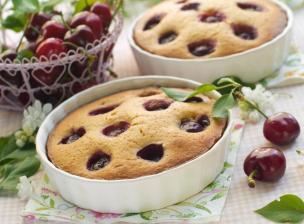 6. Répartir les cerises dans les moules à tartelette et recouvrir du mélange.