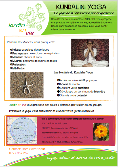 Je complète donc mon activité de Coach jardinière avec l’enseignement du Kundalini yoga, pour